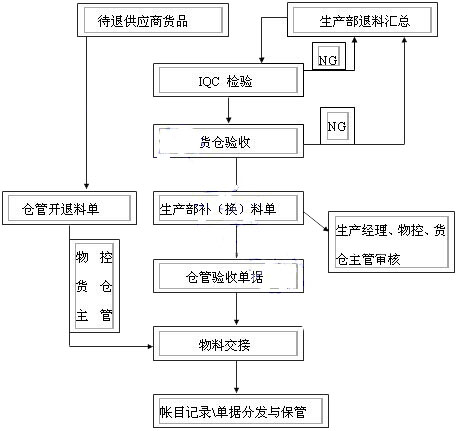 4、供應(yīng)商所送物料為誤送,超送或其他原因,經(jīng)物控、采購、總經(jīng)理協(xié)商簽名后,辦理退貨手續(xù)。此類退料不計(jì)入財(cái)務(wù)核算范圍。
