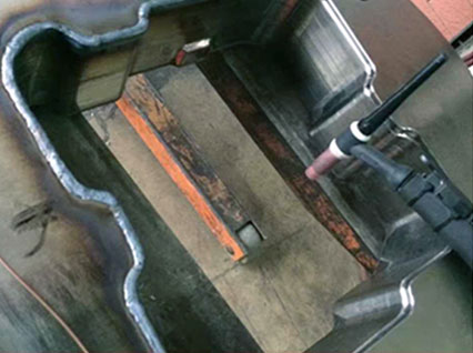 鋁、鈹銅模具由于模具材質(zhì)較模具鋼材軟,具備易磨損、易碰傷的特性。模具在經(jīng)過長時間使用后,更容易出現(xiàn)壓塌、磨損等質(zhì)量問題,各種牌號的鋁材和銅材,傳統(tǒng)氬弧焊修復(fù)這類模具材料,不易對熔池進(jìn)行穩(wěn)定控制,焊接部位容易出現(xiàn)虛焊、松散、氣孔、裂痕、強(qiáng)度差的問題。大功率激光模具焊機(jī)可以解決這一難點,由于銅、鋁材料對激光的吸收較低,所以需要更大的激光功率才能更好的融化焊絲,激光焊接修復(fù)后材料密度細(xì)密,不會出現(xiàn)沙孔等修復(fù)質(zhì)量問題。