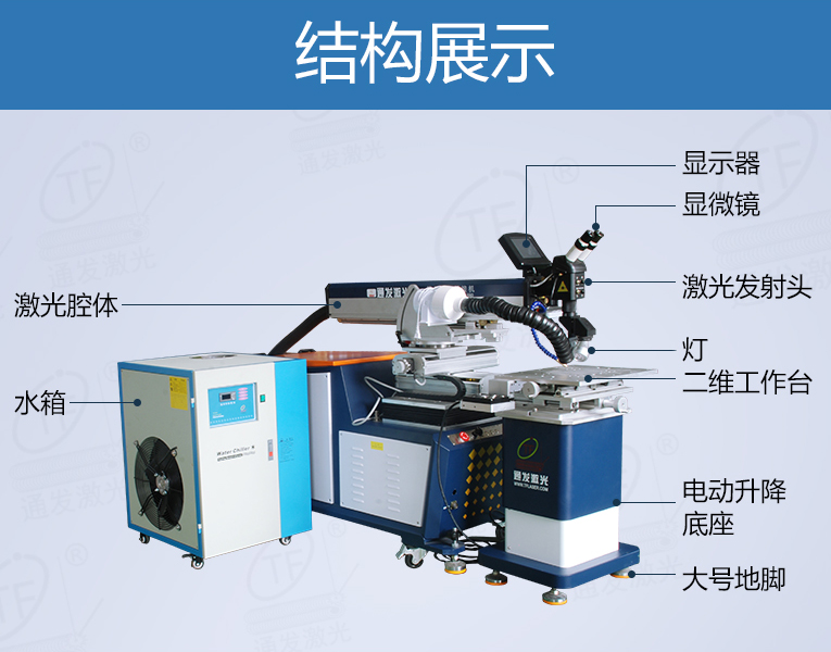 通發(fā)激光一體式模具激光焊機(jī)TFL-200YT/TFL-400YT是一款多種功能融合一體的新型模具激光焊接機(jī),針對特大型塑料模具激光焊、中型注塑模具激光燒焊、小型塑膠模具激光補(bǔ)焊、壓鑄模激光補(bǔ)焊具等各類模具可實現(xiàn)超精密修復(fù),幫您解決大型汽車模具修復(fù)難題,不需要模具移動,電動工作臺與立體旋轉(zhuǎn)激光頭完美結(jié)合,操作桿控制運(yùn)動移動實現(xiàn)輕松激光修復(fù)大型模具,同時也保留了傳統(tǒng)手動工作臺超精密修復(fù)模具功能。